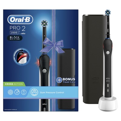 It has a simple design solid construction and neat presentation. Order online now collect 4 advantage card points for every pound you spend. 2 pack oral b electric toothbrush travel case fits oral b pro 1000 pro 2000 pro 3000 pro 1500 electric toothbrush portable hard plastic toothbrush holder cover bag 4 6 out of 5 stars 46 8 99 8. Oral b pro 2 2500 crossaction electric toothbrush rechargeable powered by braun 1 handle 2 modes including gum care 1 toothbrush head travel case 2 pin uk plug colour may vary 33 57 oral b pro 2500 black toothbrush obpr2500b.
